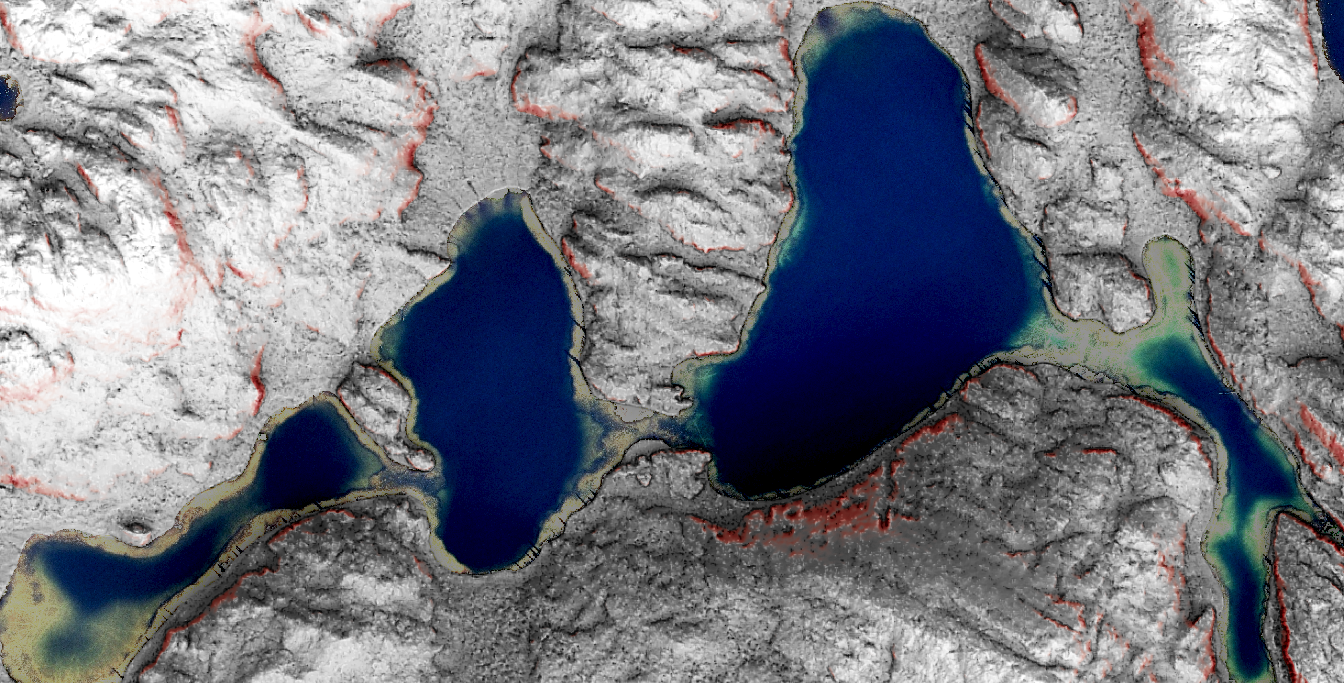 - Imagery (masked and blended with hillshade)