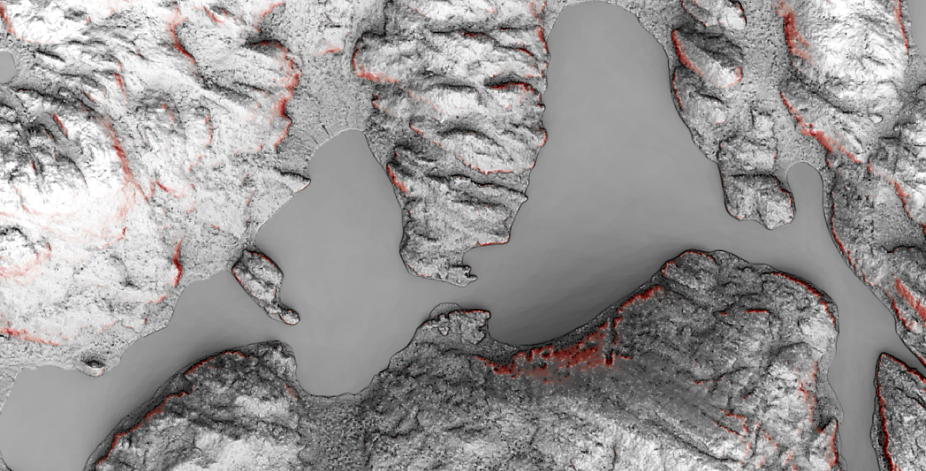 - Detrended elevation model (with red color gradient)